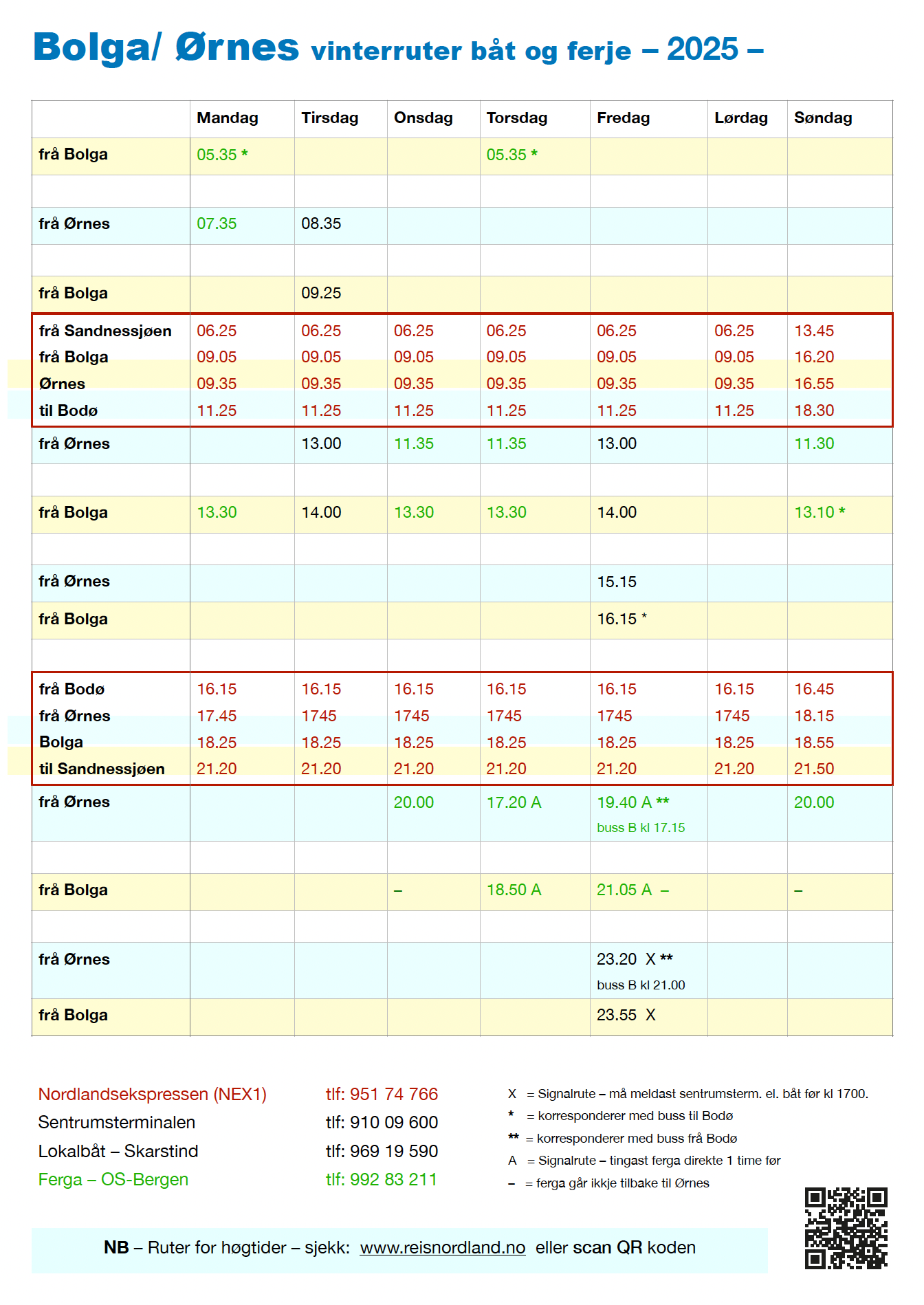 NB: Ruteendring 05.01.2026 – 15.03.2026 pga bygging av ny kai på Ørnes!